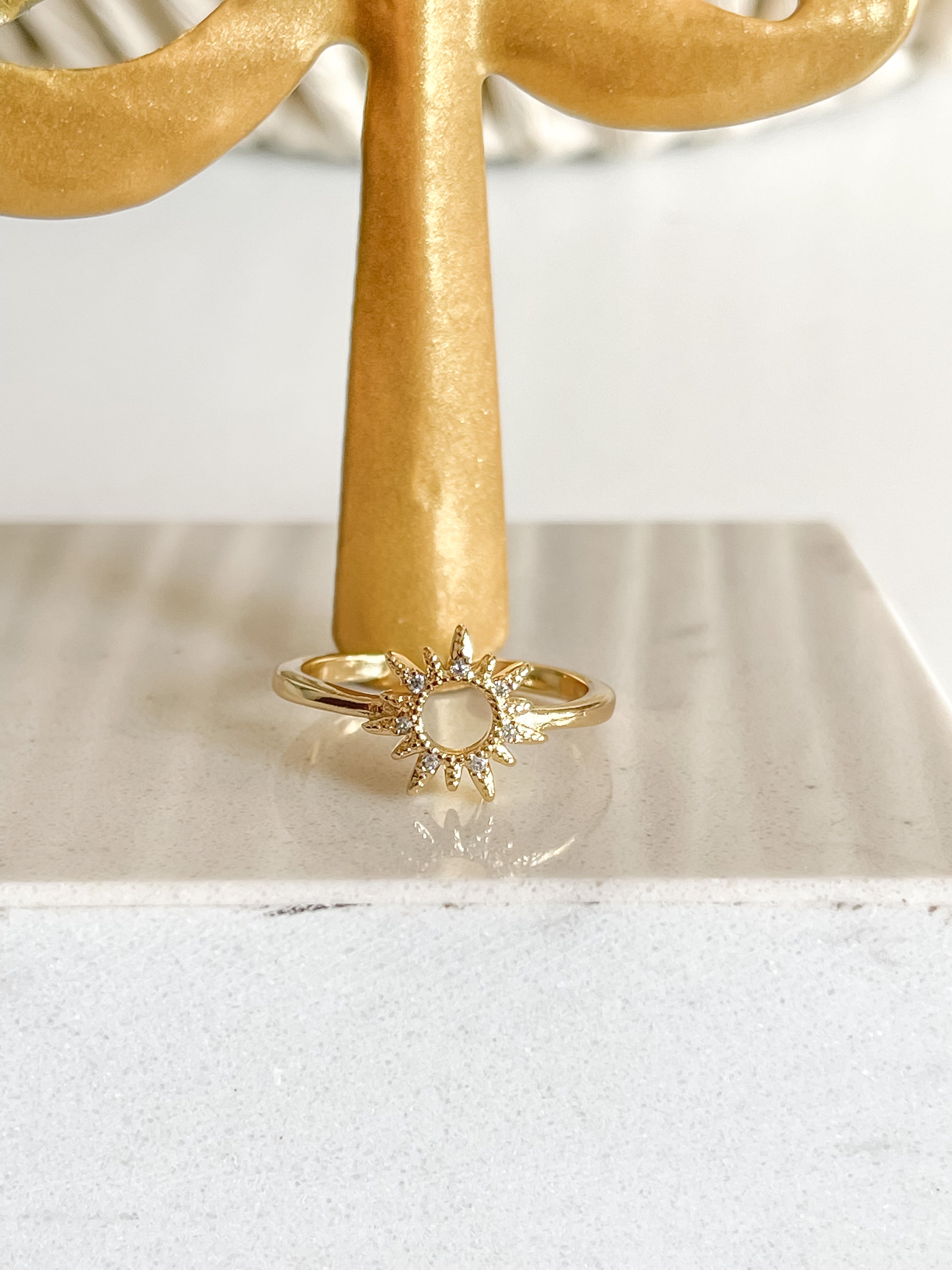 Este hermoso anillo te hará brillar, no esperes para lucir radiante. Anillo Sol es unitalla.